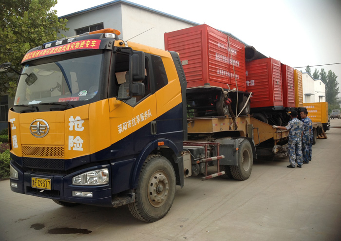 正在裝運發(fā)往黑龍江緊急救災的大流量移動泵站